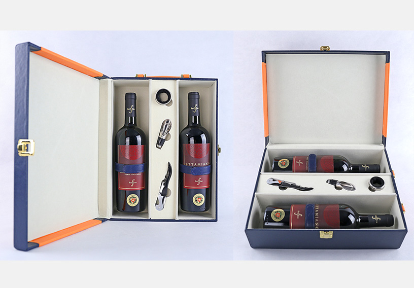 橙 - 藍色雙支皮禮盒